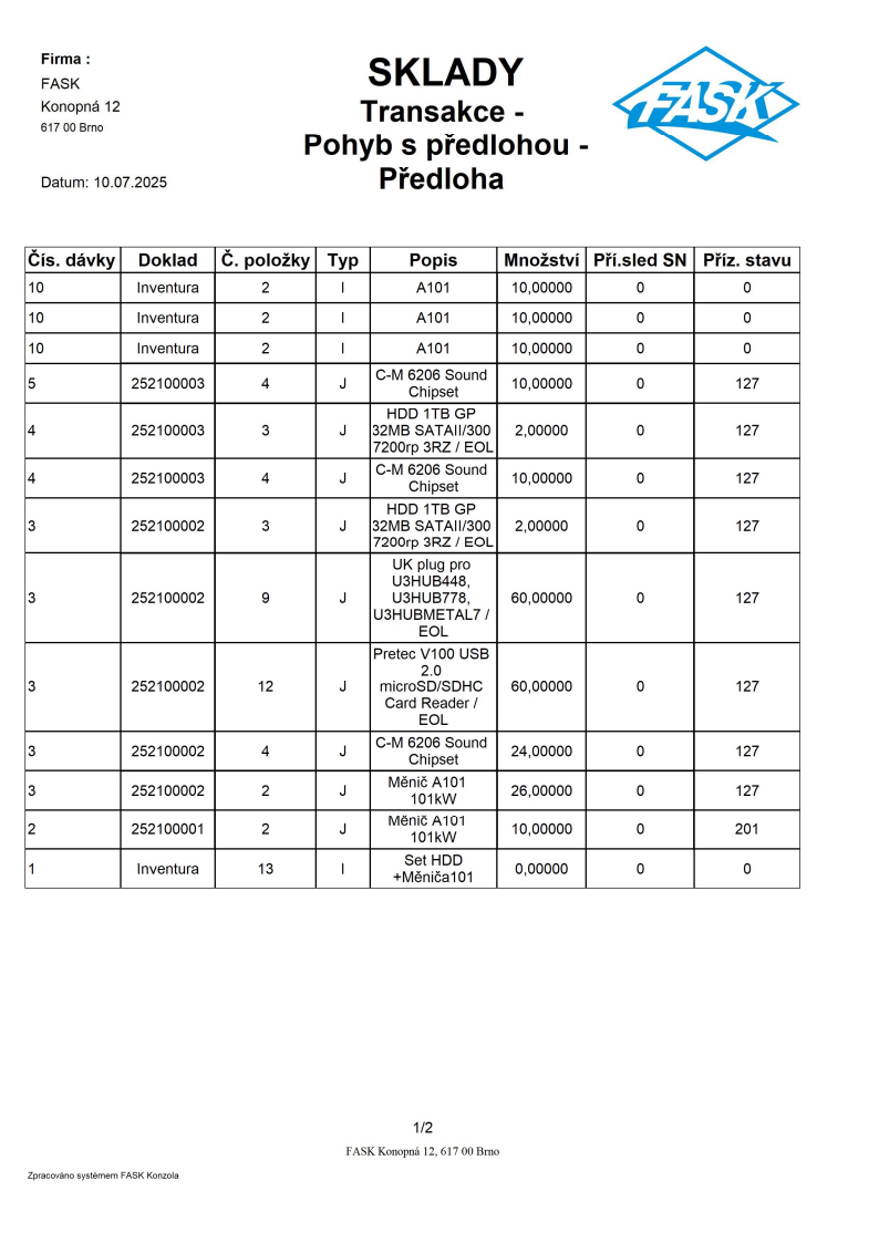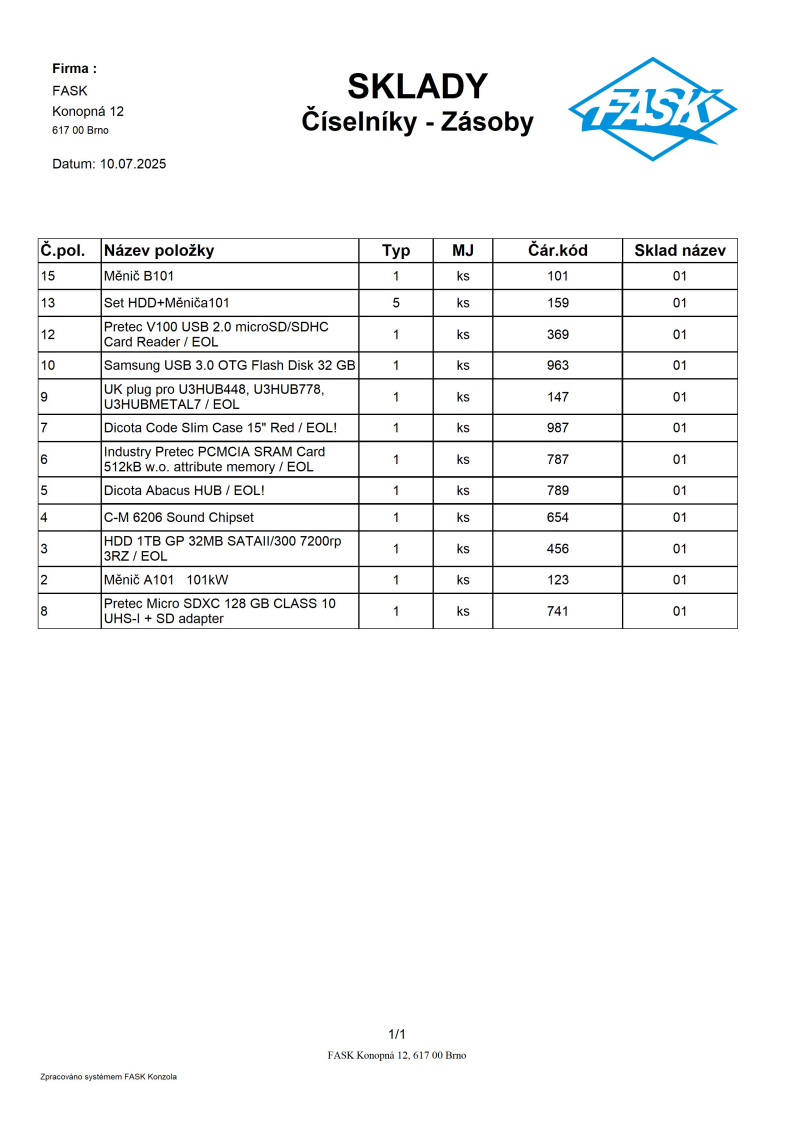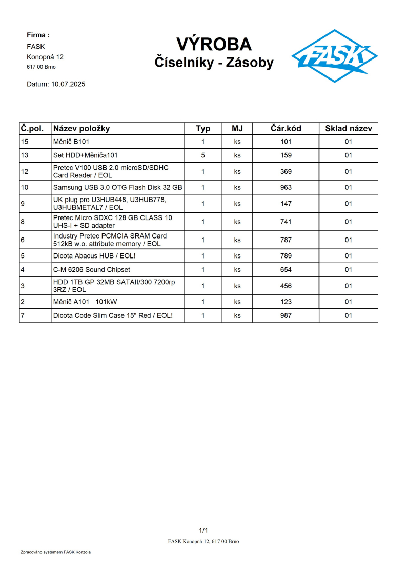 SESTAVY a REPORTY (formát zpravidla A4, tisk na laser/kancelářských tiskárnách)