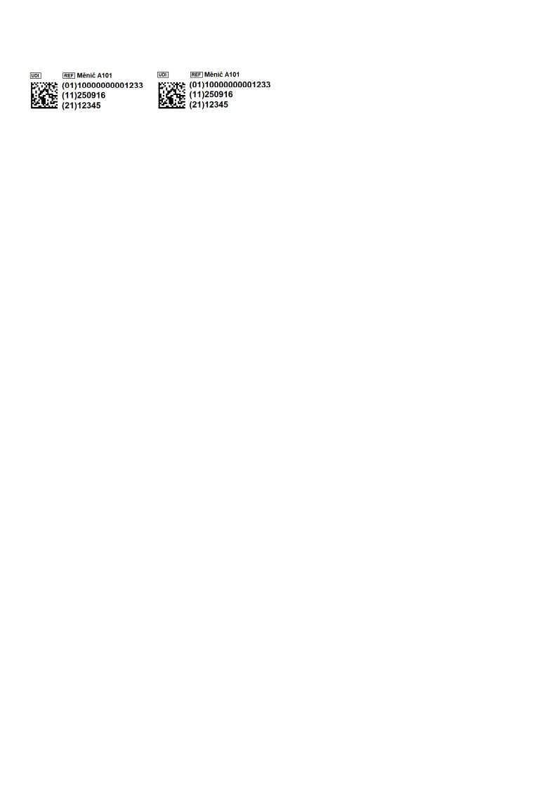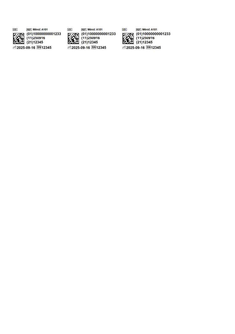 Kromě již výše zmíněných Sestav a Reportů, lze použít RDLC sestav k tisku štítků/etiket na archy. Viz níže JPG ukázky. Jedná se o příklad tisku "etiket/štítků" na větší formáty (A4/A5). To znamená buďto na čisté samolepící archy nebo archy s předem vytvořeným barevným předtiskem. V rámci tisku sestavy je tam možné tiskem vyplnt připravená "volná místa". A tím archy zkompletovat. Nespornou výhodou našeho tiskového řešení je i možnost volby identifikačních čárových/1D (nebo 2D případně obou typů současně na jedné etiketě) v normě GS1. Tedy certifikovaný formát/velikost i obsah. Příkladem může být tzv. značení nebo identifikace UDI/GS1, povinně používaná norma značení zdravotnických prostředků/pomůcek. Kdy struktura UDI kódů je přesně definována. Včetně vyžadovaného použití GS1 Datamatrix 2D kódu. Viz tato problematika na našich stránkách v sekci ETIKETY - Zdravotnictví .